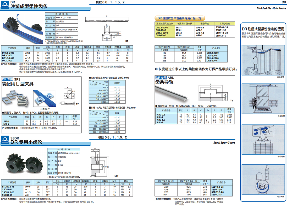 〔注 1〕 上表的產(chǎn)品型號(hào)中的 (F) 表示齒條的兩個(gè)端面經(jīng)過(guò)加工。它們可以連結(jié)起來(lái) , 達(dá)到所需的使用長(zhǎng)度。(D) 及 (K) 表示齒條加工了裝配孔 , 使組裝更加方便。