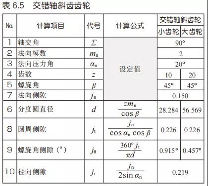 表6.5是交錯(cuò)軸斜齒輪的側(cè)隙的計(jì)算例。