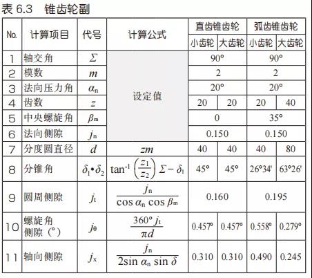 表6.3是錐齒輪的側(cè)隙的計(jì)算例。