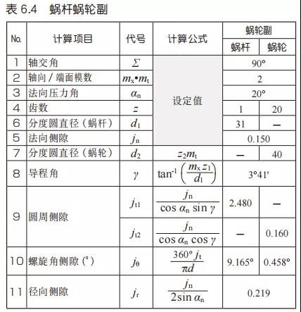 表6.4是蝸桿渦輪副側(cè)隙的計(jì)算例。