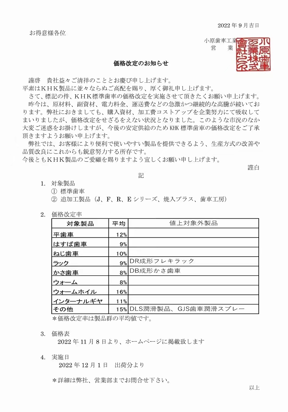 此次,KHK公司將對(duì)幾乎所有標(biāo)準(zhǔn)品進(jìn)行價(jià)格變更,包括 用于追加工的標(biāo)準(zhǔn)品 。